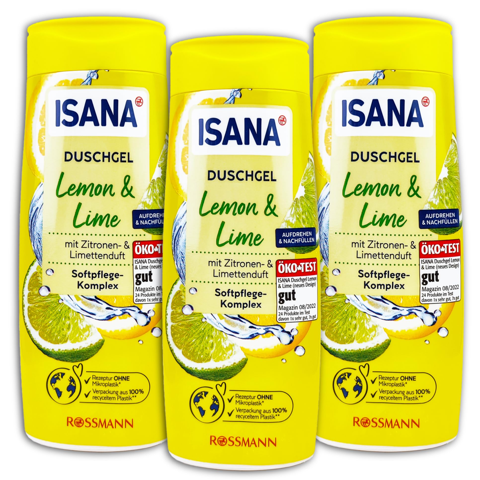 ISANA Duschgel Lemon & Lime 3 x 300 ml, 3 er Pack