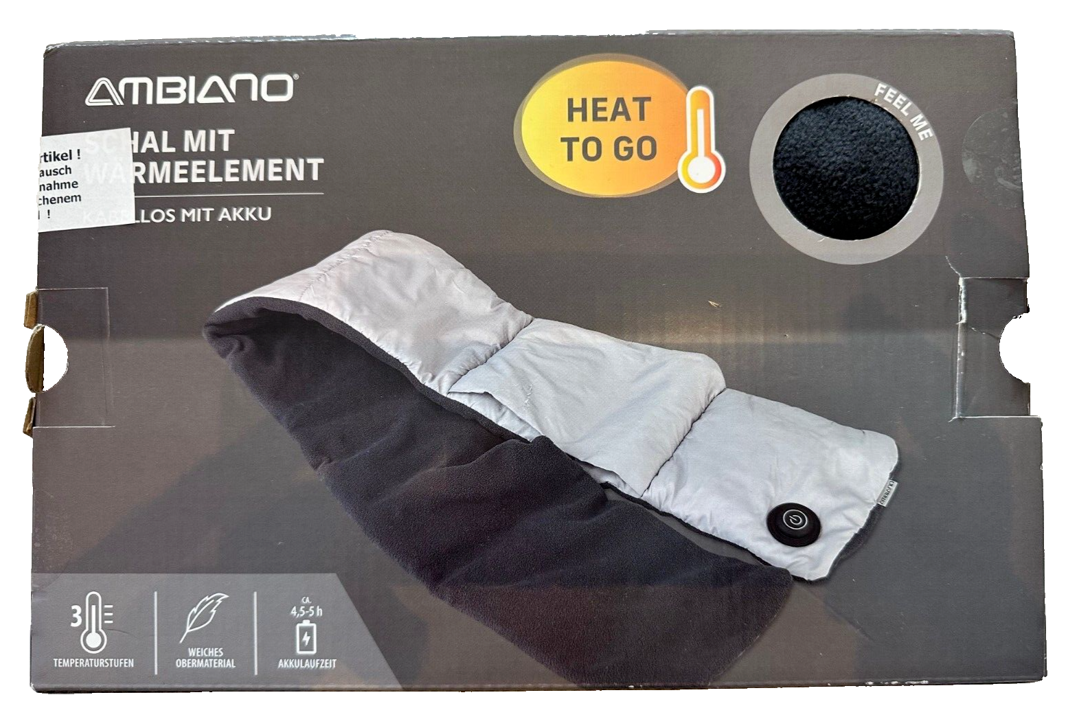 AMBIANO Akku-Wärmeschal Heat To Go, mobile Wärme Kabellos, aufladbar, neu&ovp