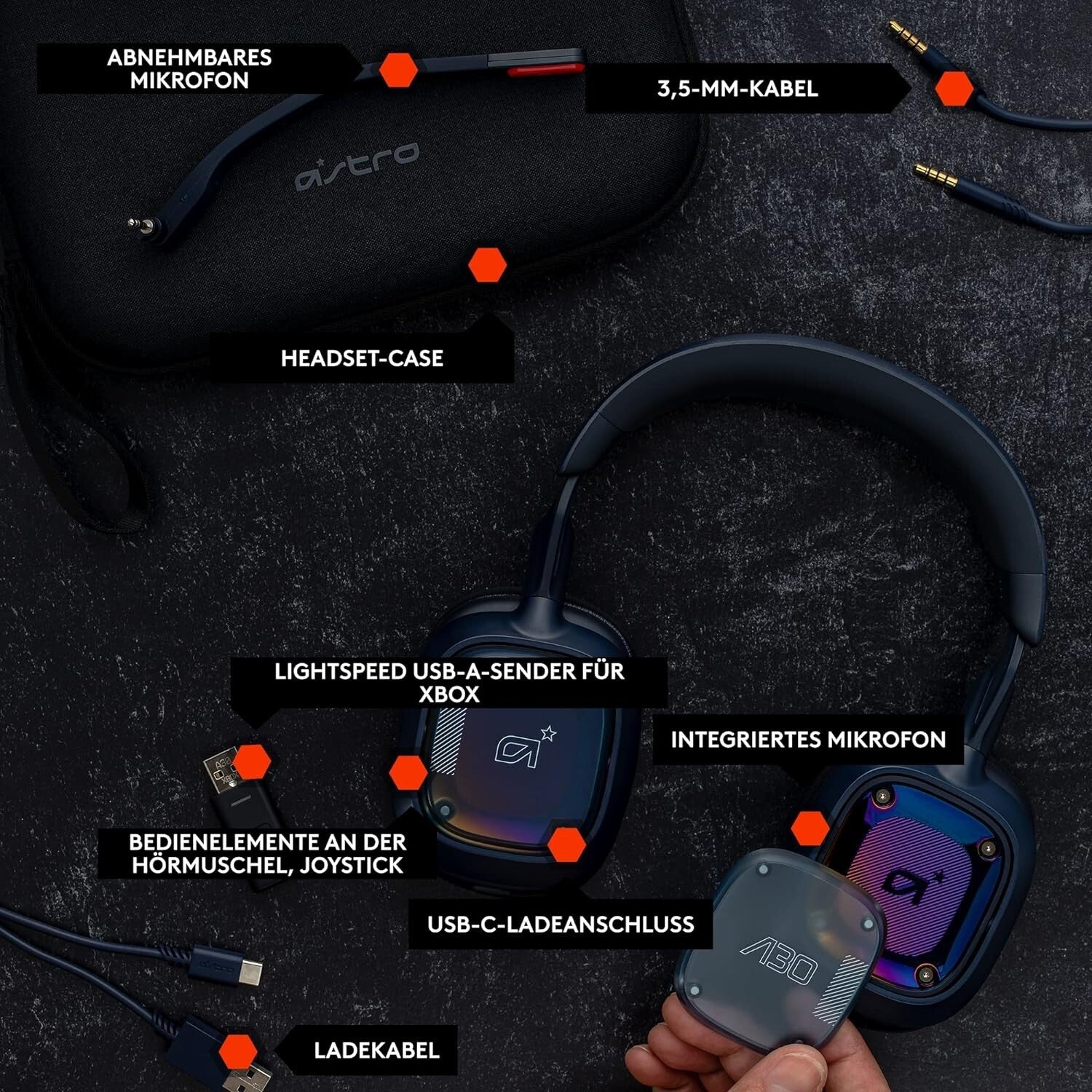 Spiele in Topform auf jedem Gerät, überall. Das A30 nutzt kabellose LIGHTSPEED Technologie für PC, XB Series X|S, PS5 und mobile Gaming-Geräte. Es nutzt Bluetooth für Mobilgeräte und das 3,5-mm-AUX-Kabel für alles andere.