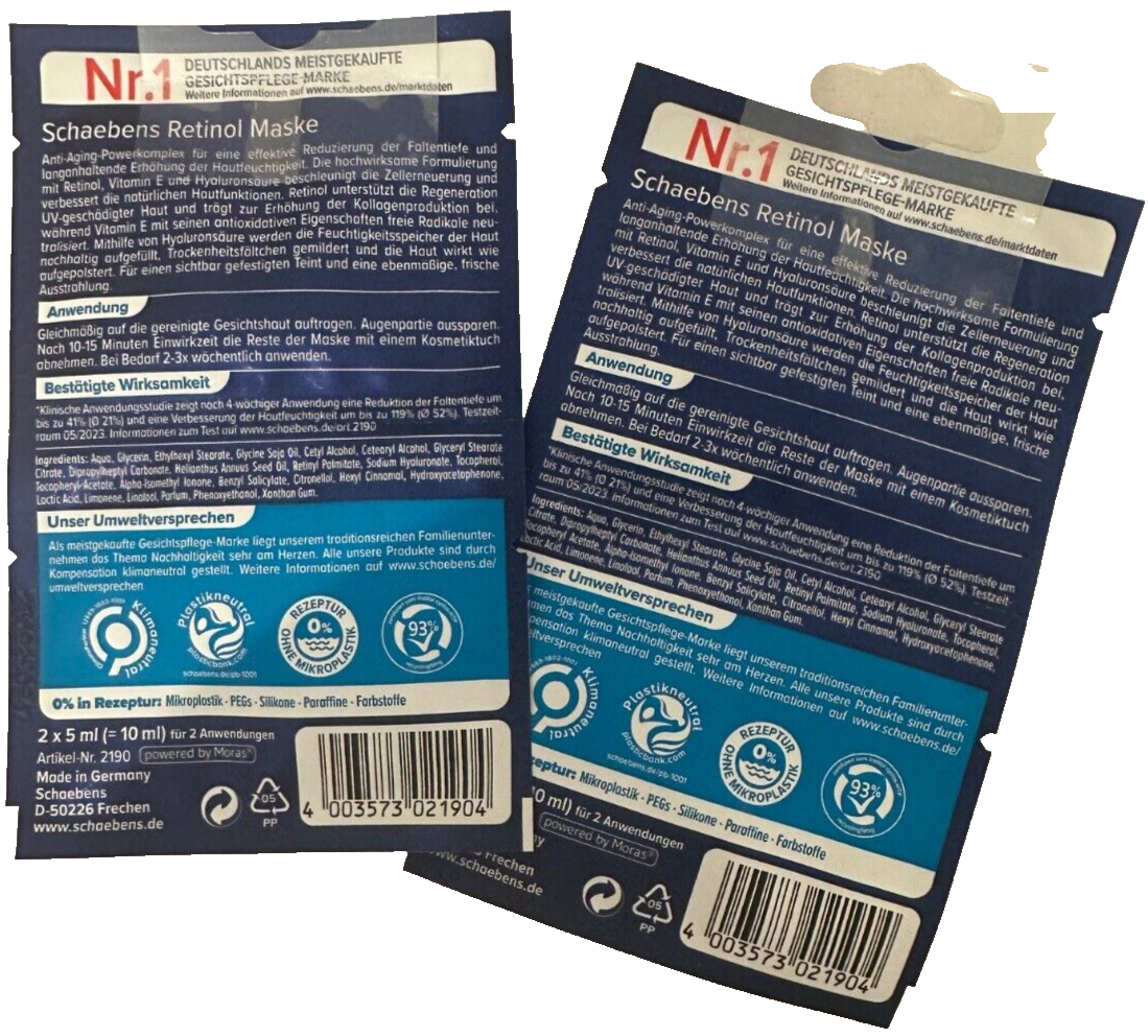 Schaebens retinola maska, ierobežota tirāža, 2 gabali, katra pa 4 x 5 ml, jauna