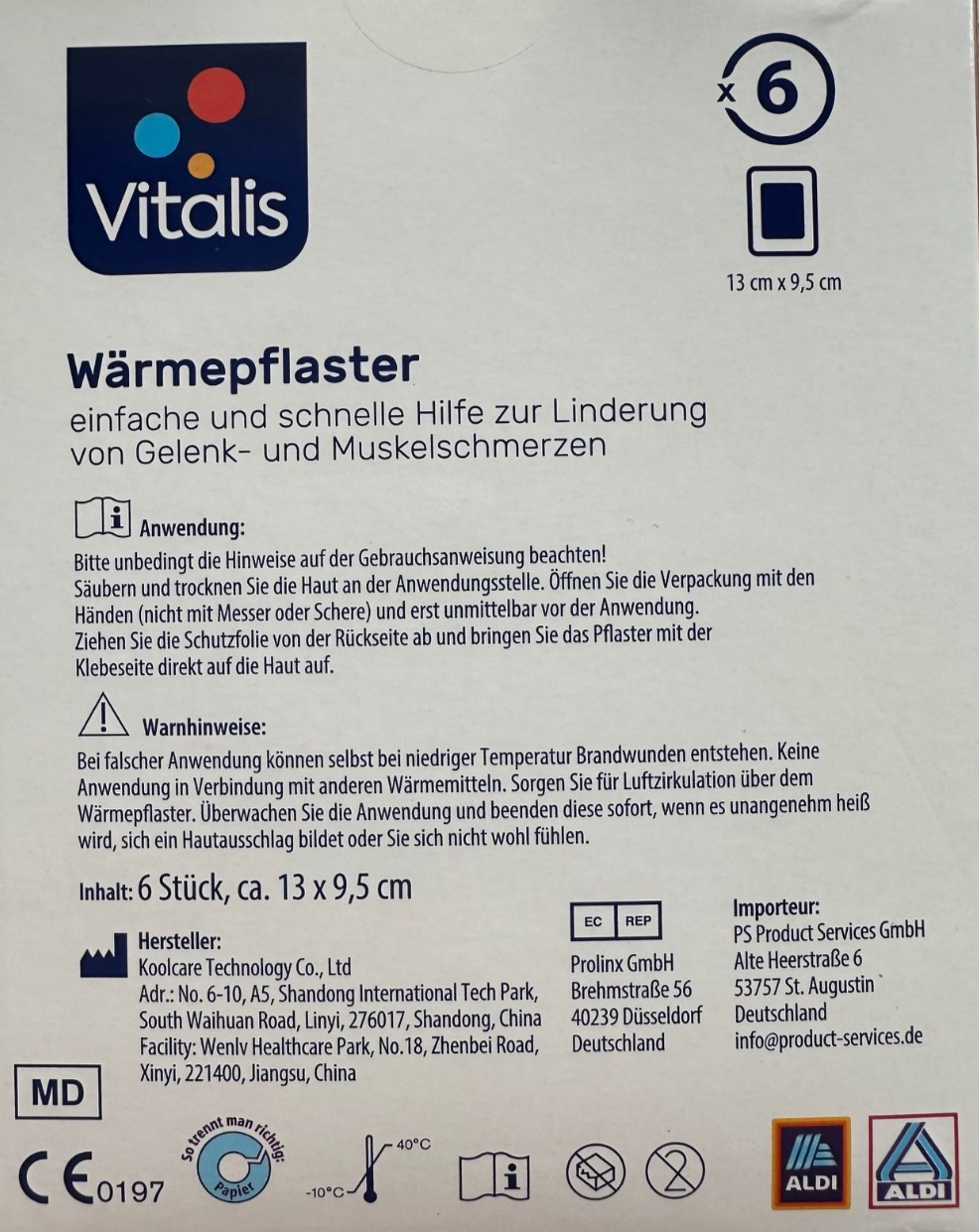 VITALIS sildošie plāksteri locītavu un muskuļu sāpju mazināšanai, 1 x 6 plāksteri, jauni un aizzīmogoti. Siltums un relaksācija ikdienas dzīvei. Vitalis sildošie plāksteri ir labs risinājums ikdienas diskomforta, piemēram, sāpošu muskuļu, sasprindzinājuma un locītavu sāpju, mazināšanai. Šie medicīniskās kvalitātes sildošie plāksteri nodrošina ilgstošu, pastāvīgu siltumu līdz pat 12 stundām. Uzklāšana ir vienkārša: vienkārši pielīmējiet plāksteri skartajai zonai, un pašaktivizējošais siltums iedarbosies. Ideāli piemērots lietošanai muskuļu stīvuma, sastiepumu vai menstruālo krampju gadījumā.