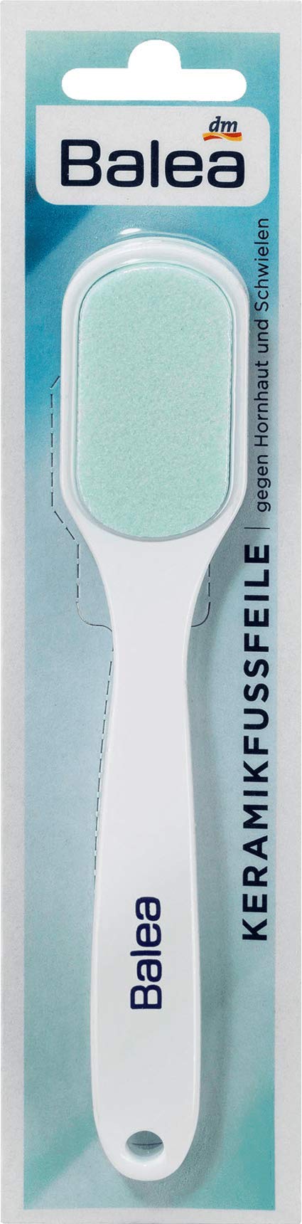 Balea Hornhaut Keramikraspel, 1 St Keramikfußfeile gegen Hornhaut und Schwielen. Der ergonomisch geformte, rutschfeste Griff liegt anwenderfreundlich in der Hand und ermöglicht ein müheloses Entfernen von Hornhaut - selbst an schwer erreichbaren Stellen. Weniger lesen Warnhinweise Auf empfindlicher Haut vorsichtig anwenden. Bei Durchblutungsstörungen oder Diabetes vor Anwendung Arzt befragen. Pflichthinweise Genaue Produktbezeichnung: Keramikfussfeile Verwendungshinweise Keramikfußfeile für optimale Wirkung auf trockener Haut anwenden. Härtere Schwielen und Hornhaut mit der groben Keramikreibfläche entfernen. Dann mit der feinen Seite sanft nachglätten. Tipp: einfach mit der Nagelbärste unter fließendem Wasser reinigen und zum Trocknen aufhängen.