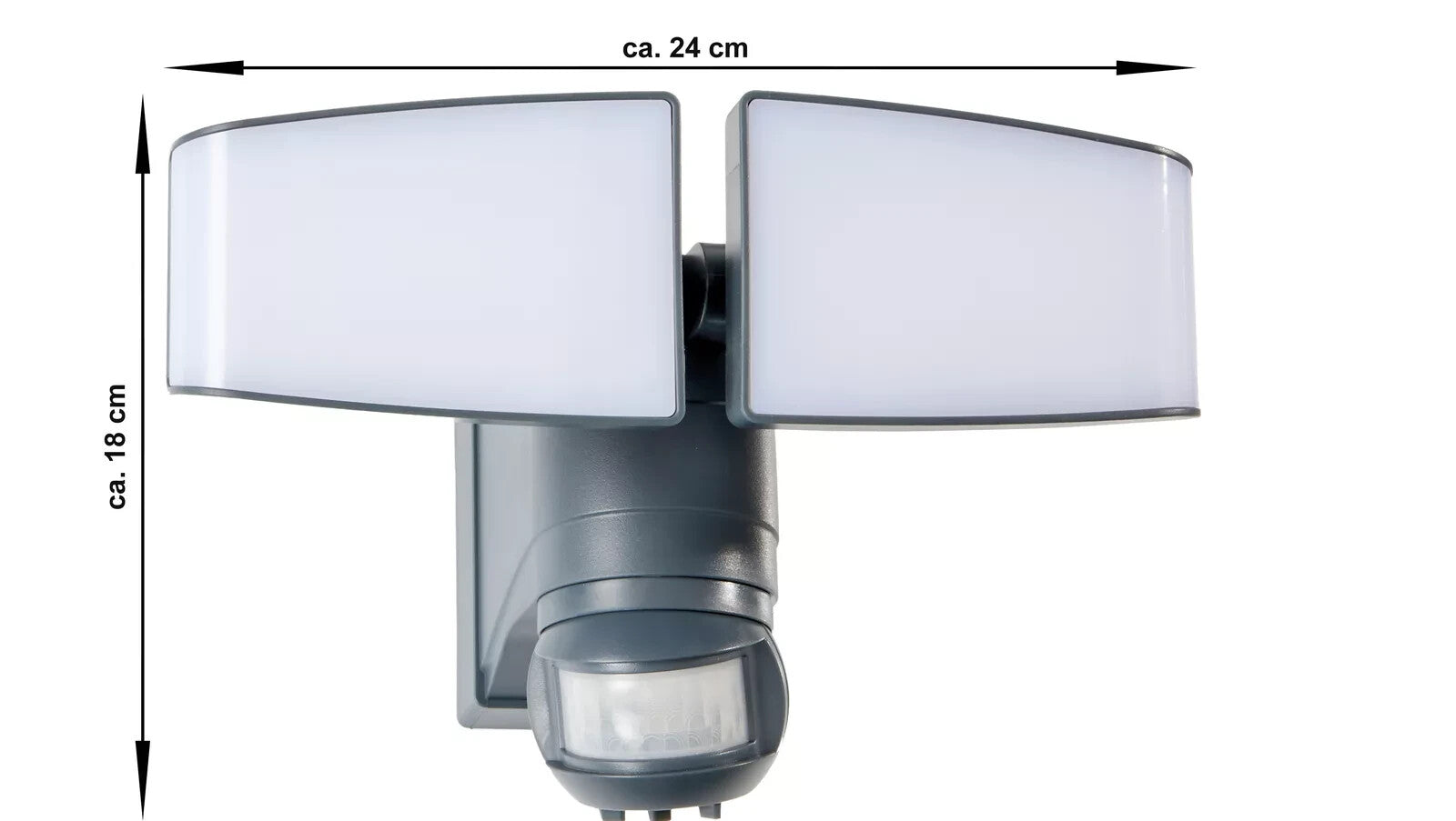 Der Strahler verfügt über kaltweißes Licht mit einem Lichtstrom von 500 Lumen, das eine hervorragende Ausleuchtung für den gewünschten Bereich bietet. Die beiden schwenkbaren Köpfe des Strahlers sorgen für eine optimale Anpassung an die gewünschte Ausleuchtung.