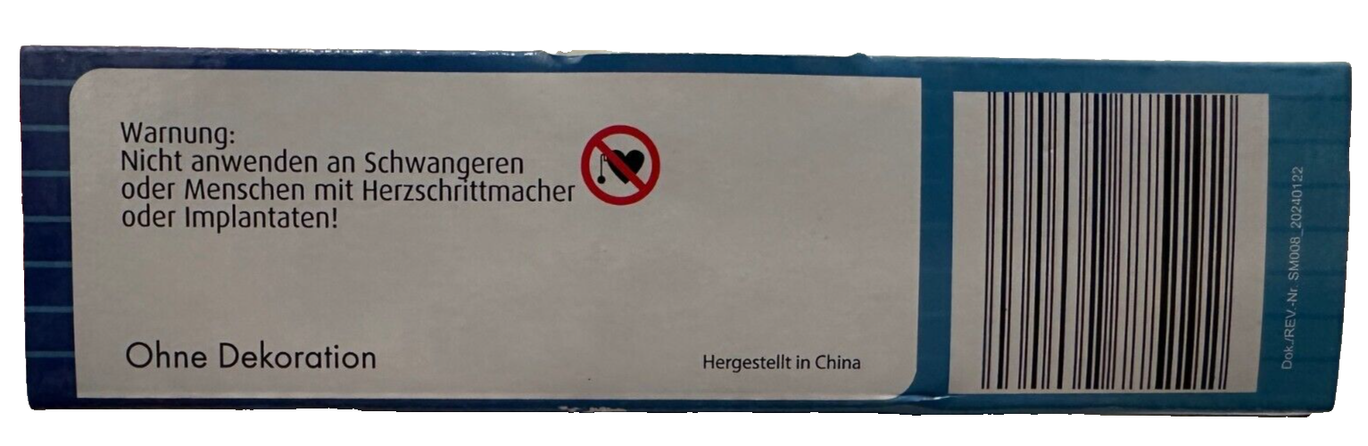 Warnung: NICHT anwenden an Schwangeren oder Menschen mit Herzschrittmacher oder Implantaten!