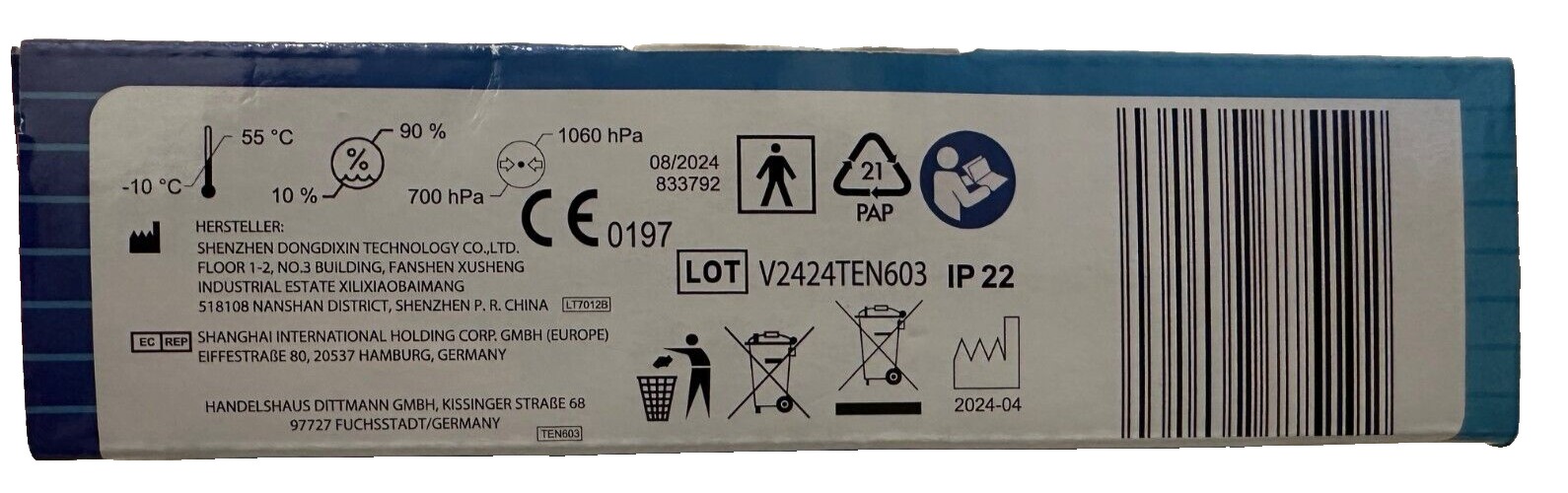 _________________________________ Für die Umwelt: Wir nehmen am dualen System LUCID teil und helfen dabei, dass Verpackungen durch Recycling dem Wertstoffkreislauf wieder zugeführt werden. Wir verwenden wieder verwendbare Versandkartons um die Umwelt zu entlasten. Bei größeren Artikeln werden diese ggf. mit Kraftnatronpapier umwickelt oder mit der Originalverpackung versandt. Elektroaltgeräteverordnung: Sie sind verpflichtet Elektroaltgeräte dem Recycling zuzuführen. Elektroaltgeräte dürfen nicht über den normalen Hausmüll entsorgt werden. Hinweise zur Batterieentsorgung: Im Zusammenhang mit Batterien oder mit der Lieferung von Geräten, die Batterien enthalten, sind wir verpflichtet, Sie auf folgendes hinzuweisen: Sie sind als Endnutzer zur Rückgabe gebrauchter Batterien gesetzlich verpflichtet. Sie können Altbatterien, die wir als Neubatterien im Sortiment führen oder geführt haben an uns zurückgeben. Die auf den Batterien abgebildeten Symbole haben folgende Bedeutung: Das Symbol der durchgekreuzten Mülltonne bedeutet, dass die Batterie nicht im Hausmüll entsorgt werden darf. Pb = Batterie enthält mehr als 0,004 Masseprozent Blei Cd = Batterie enthält mehr als 0,002 Masseprozent Cadmium Hg = Batterie enthält mehr als 0,0005 Masseprozent Quecksilber. Das Medizinproduktegesetz sowie Medizinprodukt-Betreiberverordnung sieht vor dass diese medizinischen Geräte nur durch qualifizierte Anwender und qualifizierte Nutzer, nach entsprechender Schulung bzw Einweisung zu betreiben und einzusetzen sind. Die Einweisung und Schulung muss durch einen autorisierten Fachhändler vorgenommen werden. Bitte kümmern Sie sich darum! Bitte Beachten Sie die Angaben auf der Packung Ich versichere, dass unser Handel in Übereinstimmung mit allen geltenden Gesetzen und Vorschriften der EU erfolgen.