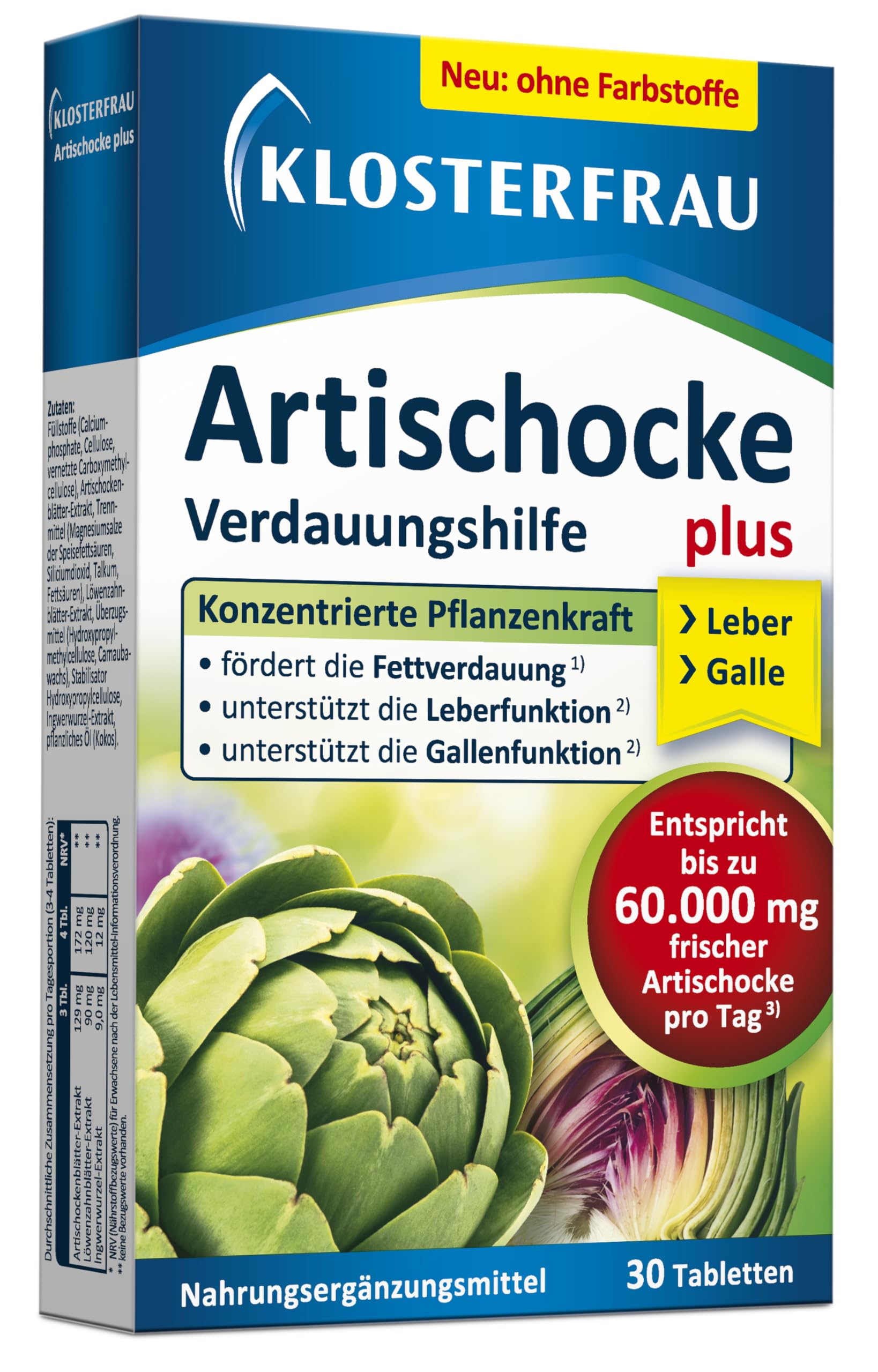 Klosterfrau Artischocke Tabletten | plus Löwenzahn + Ingwer | Mit 3-fach Pflanzenkraft für die Verdauung | 30 Stück