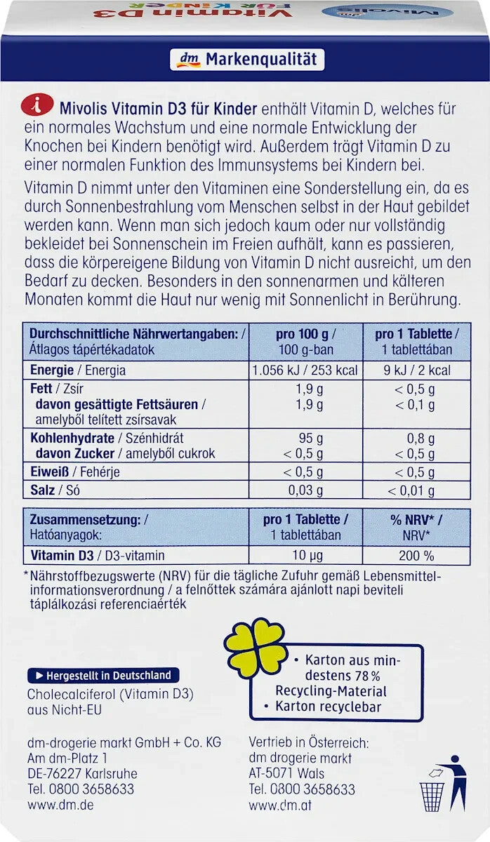Mivolis Vitamin D3 für Kinder, Kautabletten 60 St., 51 g, neu&ovp
