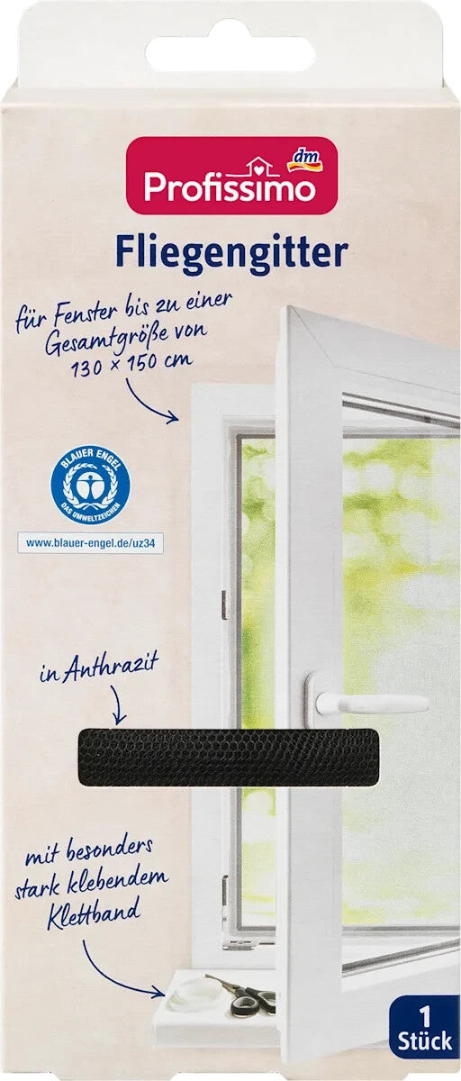 Das Profissimo Fliegengitter hindert durch seine feinmaschige Struktur fliegende Insekten und Spinnen, aber auch kriechende Insekten und Blätter am Eindringen in Wohn-, Schlaf- und Arbeitsräume. Die Luftzirkulation wird nicht eingeschränkt. Für alle Fenster bis 130 x 150 cm. Mit Klettband zur einfachen Anbringung. Das Fliegengitter aus 100% Polyester ist UV-beständig und mehrfach verwendbar und waschbar.
