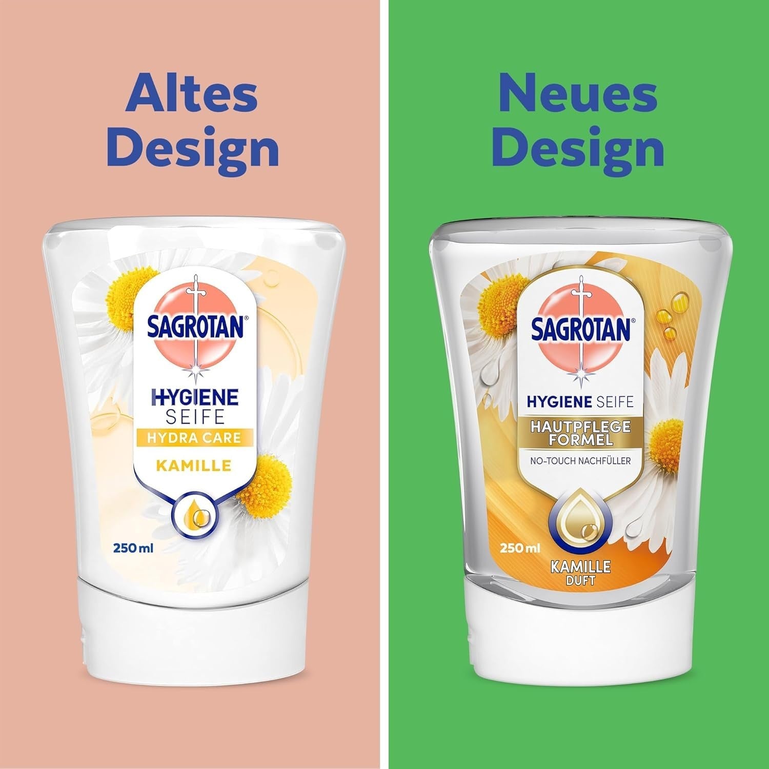 ● LIEFERUMFANG: 1 x Sagrotan No-Touch Starterset inkl. 1 x 250ml Sagrotan No-Touch Nachfüller Kamille / Feuchtigkeitsspendend / Sanft zur Haut und stark gegen Bakterien