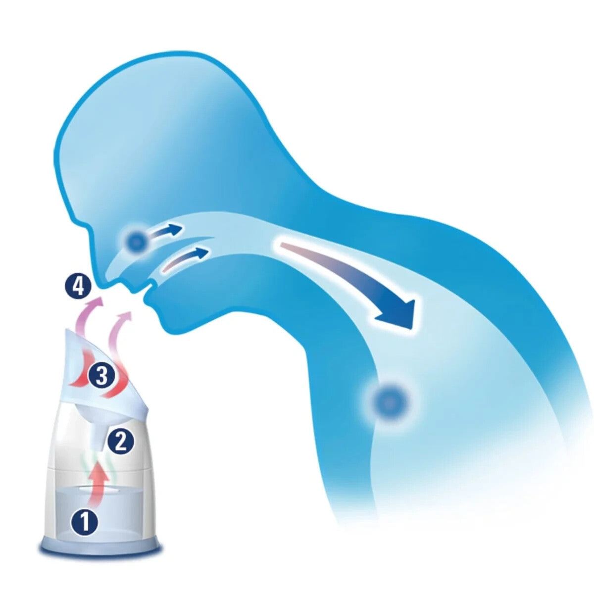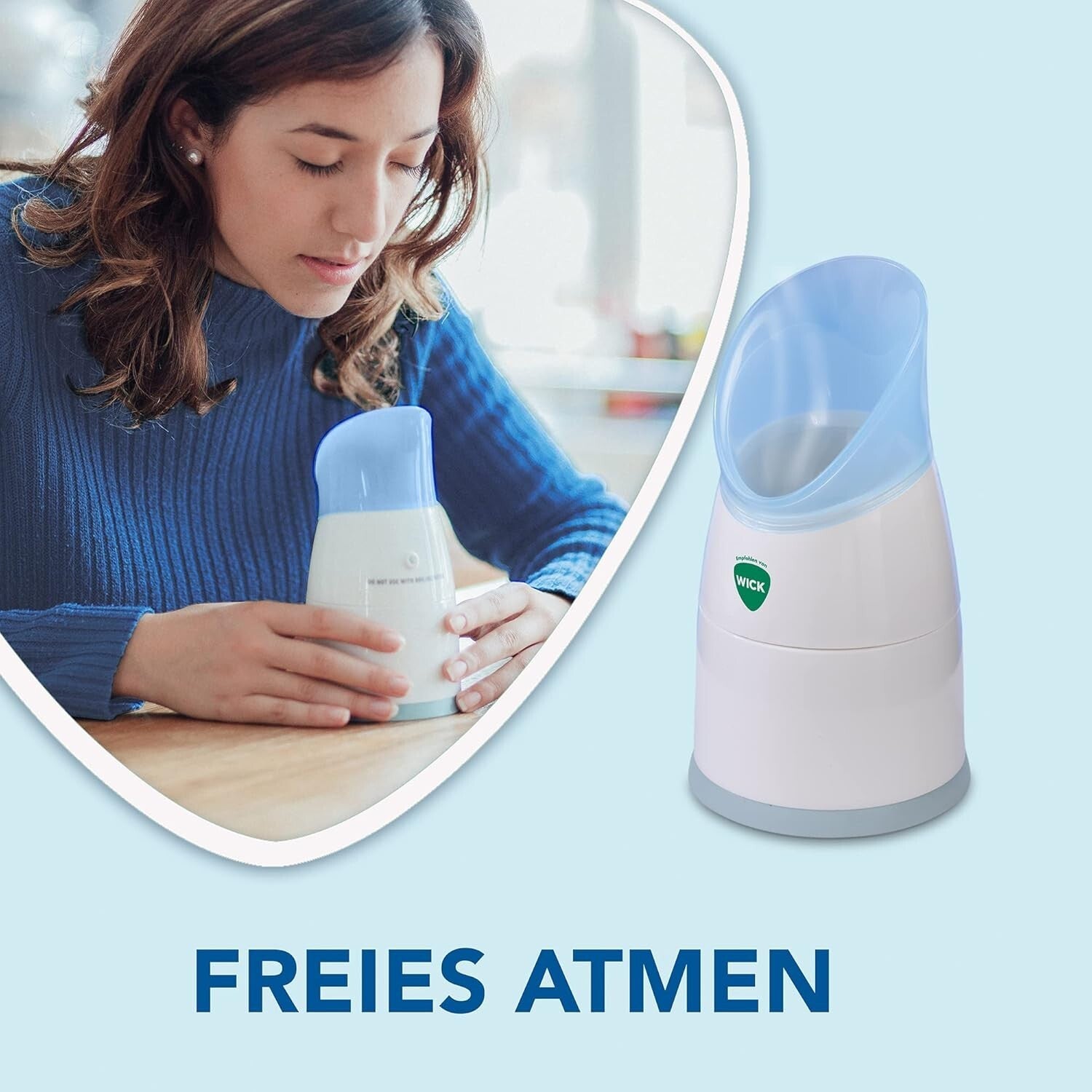 Die einzigartige Inhalationskonstruktion ermöglicht die Abgabe eines wohltuenden Gemischs aus Duft und warmem Dampf, das Husten und Erkältungen lindert.