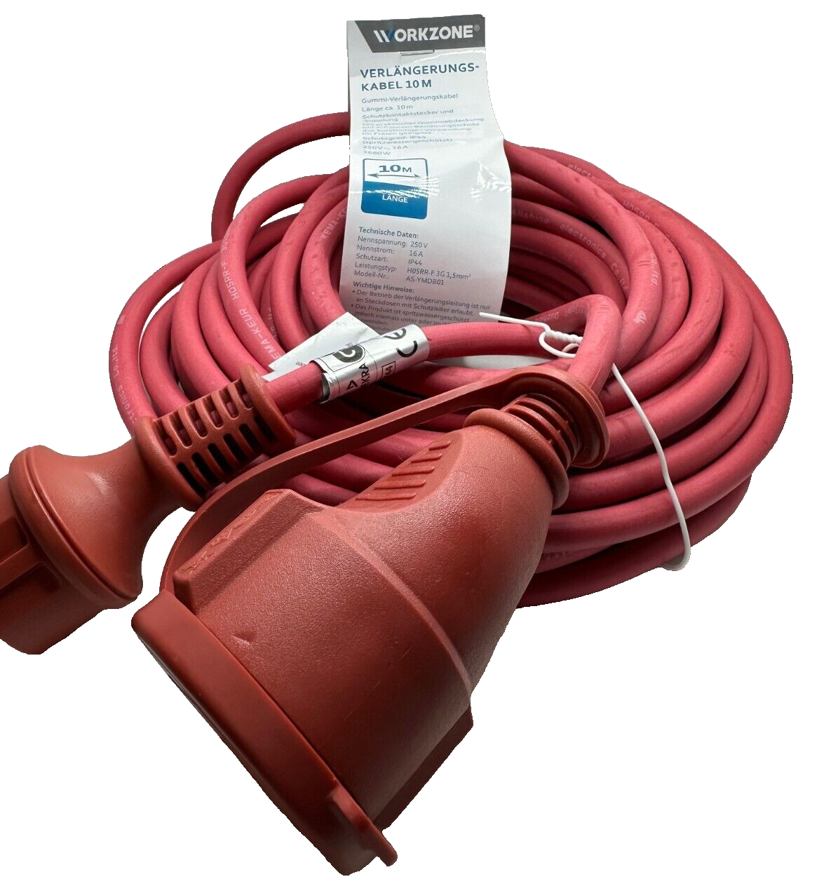 Mit dem WORKZONE Gummi Verlängerungskabel, flexibel einsetzbar für Geräte wie Bewässerungssysteme oder Landschaftsbau, stellen Sie sicher, dass Ihre Elektronik auch an entlegensten Stellen einsatzbereit ist. Dieser robuste Stromkabel, mit einer Länge von 10 Metern und einer Versorgungsspannung von 201-250 V, ist speziell für den Einsatz im Freien konzipiert. Es zeichnet sich durch feuchtigkeitsbeständige sowie wetterfeste Eigenschaften aus und verfügt über einen doppelten Isoliermantel aus Gummi für maximale Sicherheit. Die Litze mit drei Leitern, gefertigt aus hochwertigem Kupfer, garantiert eine zuverlässige Stromversorgung Ihrer Geräte. Farbe: Rot, Typ: H05RR-F 3G, IP44